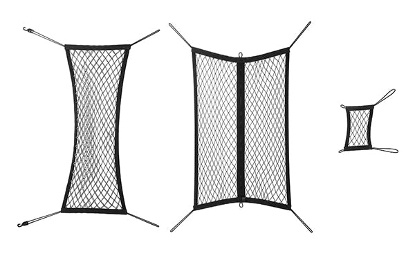 The netting system from the Škoda Original Accessories range is both a practical and attractive addition to the luggage compartment. It is de¬signed to secure transported items or luggage and prevents them from sliding around when the vehicle is on the move, thereby also preventing any damage. Securing larger items using a floor net also increases the safety of vehicle passengers, and prevents the vehicle‘s centre of gravity from shifting when manoeuvring sharply. The nets are fitted by hooking them onto the lashing eyes and hooks in the luggage compartment. The elastic material has undergone strength tests and is designed to hold items weighing up to 1.5 kg. To avoid causing damage to the netting ma¬terial, do not store items with sharp edges or hook-and-loop fasteners in the net.