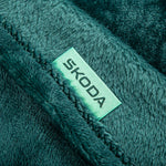 Can be used as a pillow or blanket. Hem in electric green colour with label and logo Škoda.