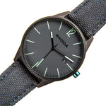The matte dial case in anthracite grey gives the watch a modern and sophisticated look. The back of the case in the same color elevates the overall appearance of the watch. The dial is equipped with marked indexes with luminescence in electric color, ensuring good readability even in low light conditions. The crown of the watch is in emerald color, adding to its elegance.