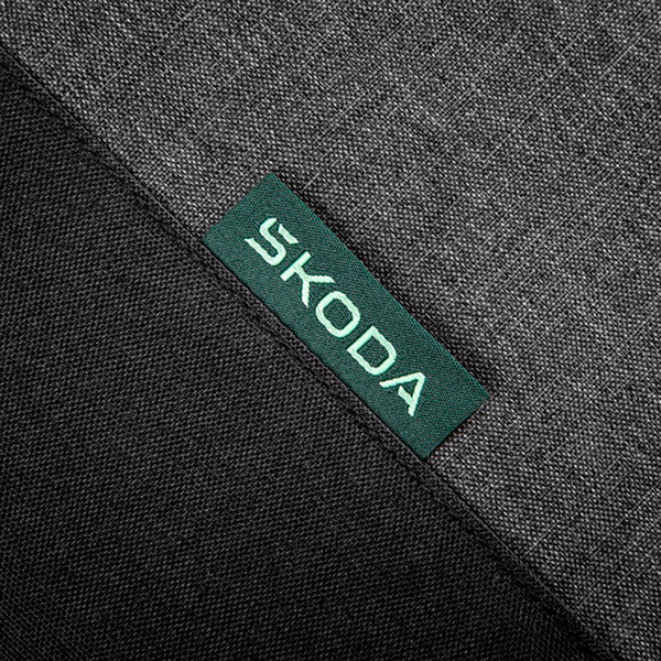 In the front part, two small zipped pockets 20 x 10 cm, the upper one with a practical keyring. On the front, a label in emerald green with the Škoda logo in electric green.