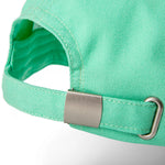 Baseball cap in electric green colour with embroidered logo Škoda. 6 panels, belt for regulation of the size with a metal buckle with logo Škoda.